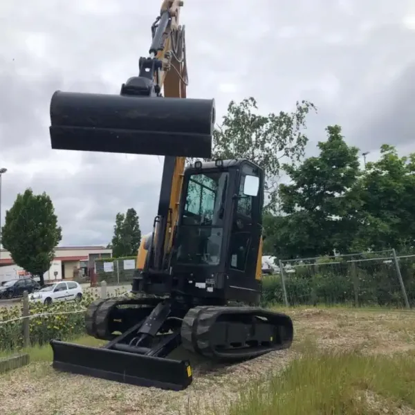 Dotée d’une cabine spacieuse, de chenilles en caoutchouc pour une meilleure adhérence et d’une lame robuste, elle garantit une maniabilité exceptionnelle. Sa ligne BRH et sa ligne de rotation à double effet proportionnelle assurent une grande précision et une réactivité optimale. L’attache rapide mécanique et les trois godets fournis permettent une polyvalence maximale pour vos travaux de terrassement, excavation et aménagement paysager.